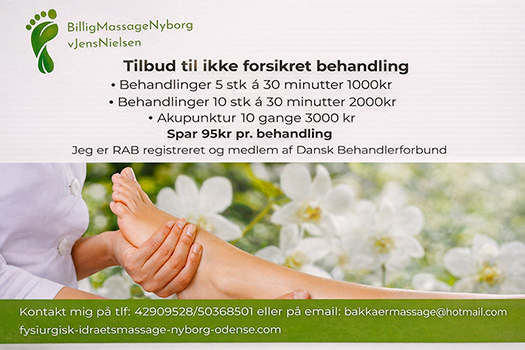 Jeg har selv lavet rigtig meget sport og har derfor erfaring med disse skader. Vælg Fysiurgisk, det er sportsmassage, som udføres individuelt, afhængig af klientens behov.